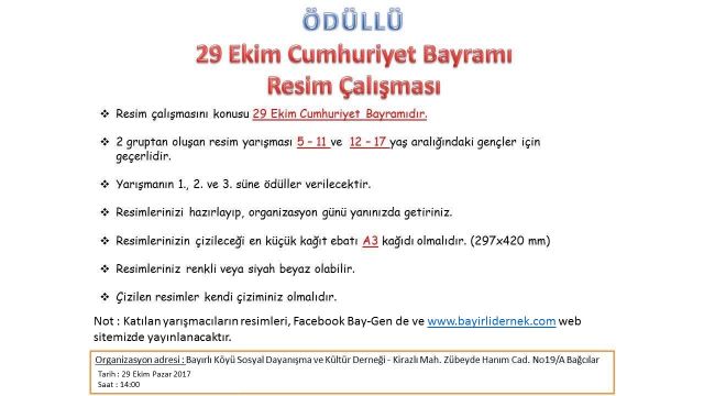 Bizlere armağan edilen bu önemli günde herkesi derneğimize bekliyor, çocukarınızı resim yarışmasına katılmaları konusunda desteklemenizi rica ediyoruz. Hafta sonları çocuklarınız ile birlikte derneğimizi ziyaret ederek, çocuklarınızın resim çalışmalarını yapmalarını sağlayabilirsiniz.